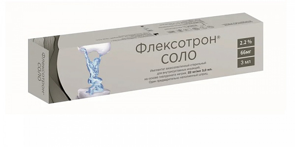 Флексотрон Соло средство для внутрисуставного введения шприц 22мг/мл, 2,2% 3,0мл шприц 1шт в наличии. Узнайте, как купить товар с бесплатной доставкой по Пятигорску, Пятигорскорму городскому округу на странице «