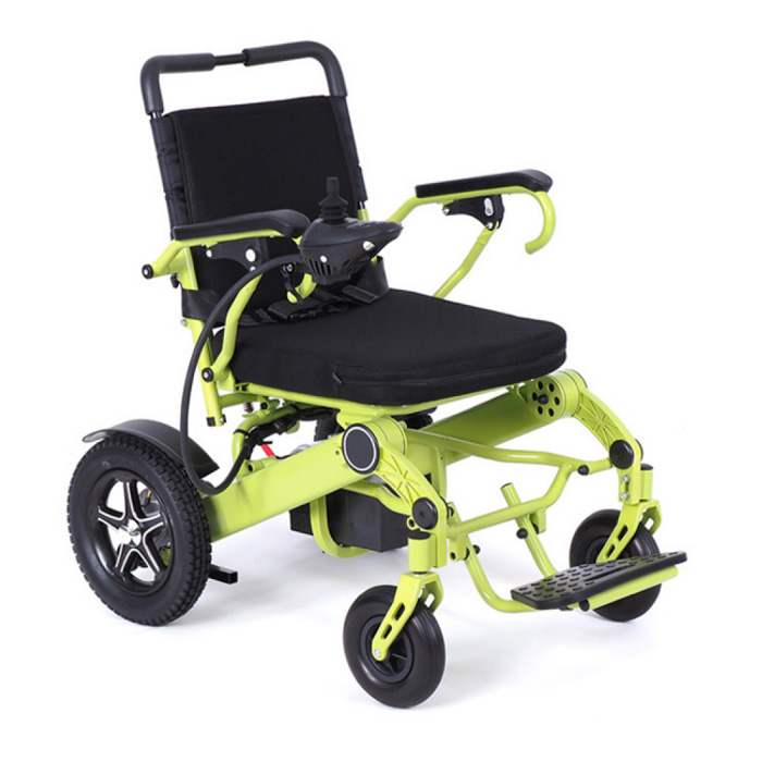 Электрическое кресло-коляска с компактно складывающейся рамой.